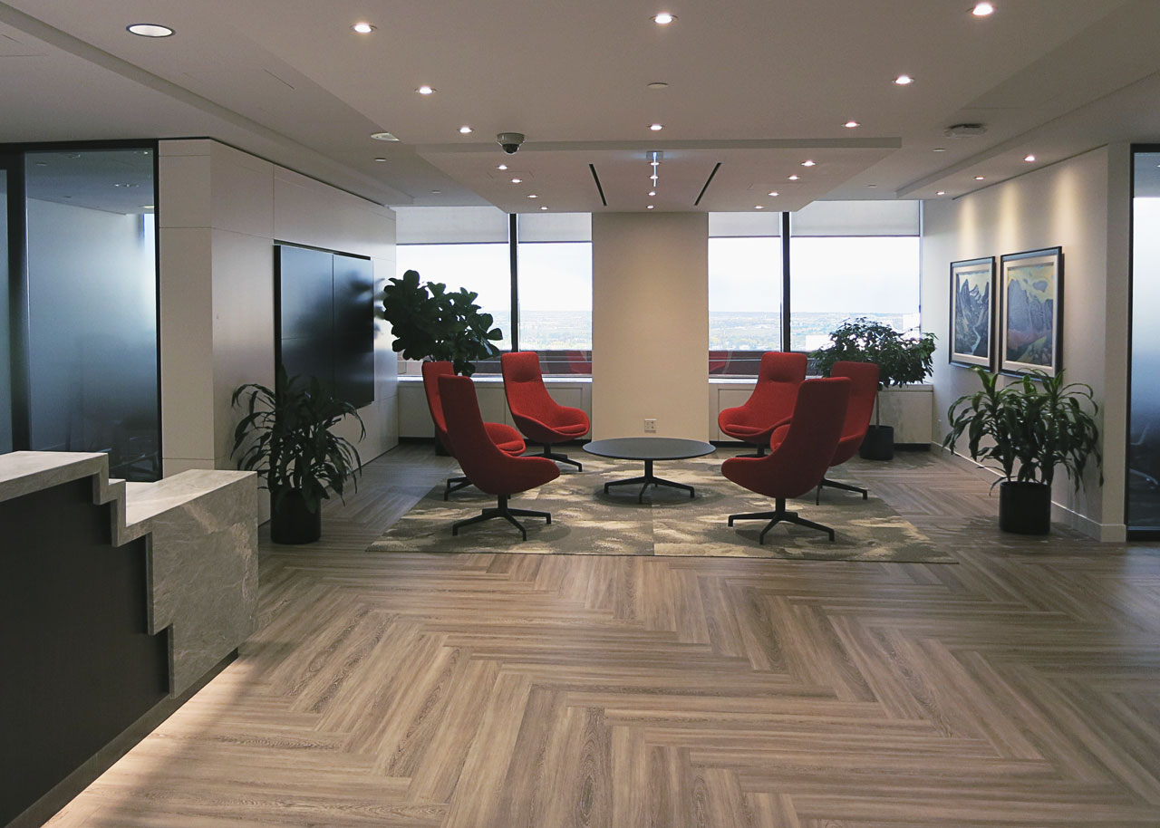 This renovation focused on upgrading the client floor, the final step in completing a multi-phase project in a fully occupied space. The integration of a motorized movable partition along with lighting and technology, this partial floor is defined as a dedicated client meeting and multi-use training facility.